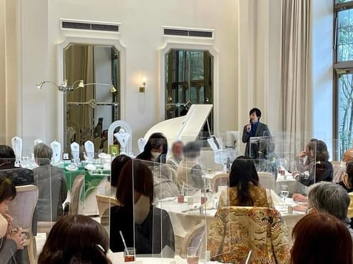 今回は宝石展会場とお食事の会場が同じで、全員が(スタッフも含めて)園田涼さんのピアノ演奏を楽しませていただきました。