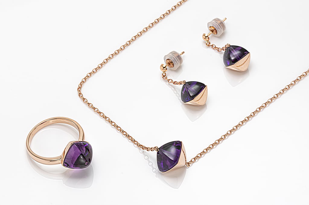 地金は宝石の色に合わせて「ホワイトゴールド」「イエローゴールド」「ピンクゴールド」からお選びいただけます。シンプルなデザインですので、日常的に使用しやすく、美しい貴女のアイコンになるのではないでしょうか?