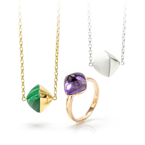 アイテムは「リング」「ブレスレット」「ネックレス」「ロングネックレス」などがございます。宝石は7種類からお選びいただき、現在の貴女や未来の貴女に必要なパワーを纏っていただきたいと願っています。
