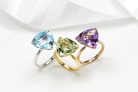 日常に使い易いデイリージュエリーはもちろん、パーティーなど華やかな日に身に着けるハイジュエリーまで、カラーストーンをメインにバリエーション豊かなジュエリーを揃えています。