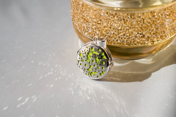 写真を入れるロケットと、故人の遺灰や遺髪などを身に付けられるようにした、日本初上陸の「ヴィータ・ロケットペンダント」ジュエリーです。
