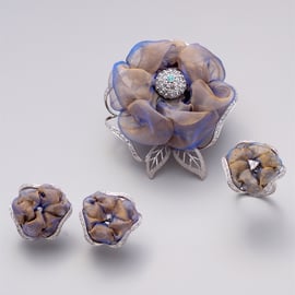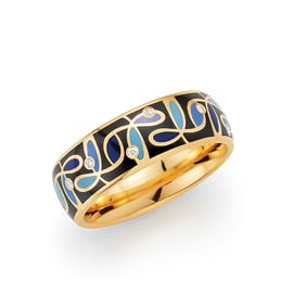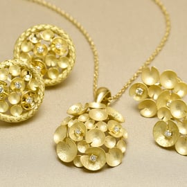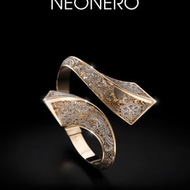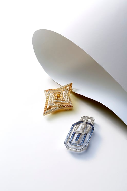 立体的なフォルムとサファイアグラデーションの調和により生まれる絶妙な空間と流れるラインが美しいジュエリーです。