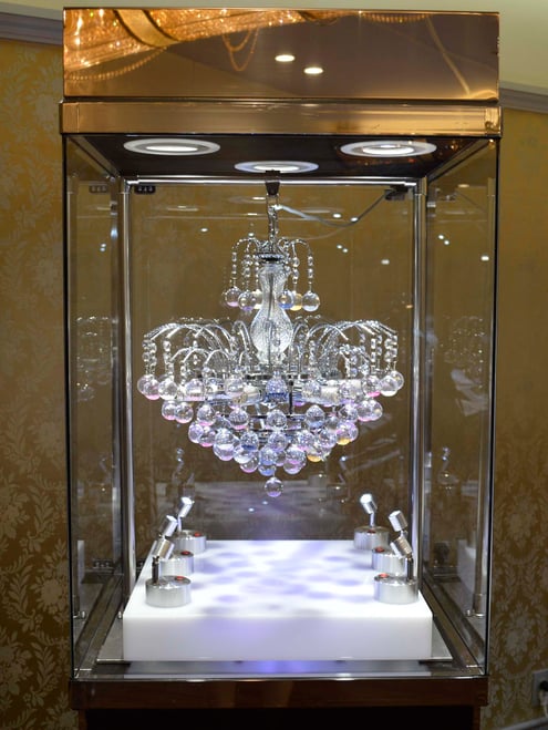 ※ジュネ社の「サファイヤのシャンデリア」は、2,000カラットのプリンセスカットのサファイヤで作られています。この機会に是非ご覧ください。